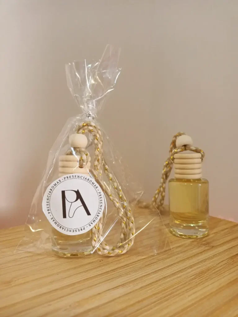 Es un delicado difusor artesanal de 8 ml, diseñado para aromatizar y decorar tus espacios favoritos. Su práctico formato con frasco de vidrio y tapa de madera permite una difusión natural y constante del aroma, sin necesidad de electricidad ni sprays. Ideal para colgar en vehículos, escritorios, baños, closets o cualquier rincón, aportando una fragancia agradable y armoniosa en todo momento. Producto elaborado con dedicación y cuidado, utilizando esencias de alta calidad que envuelven tus espacios con notas únicas y duraderas.